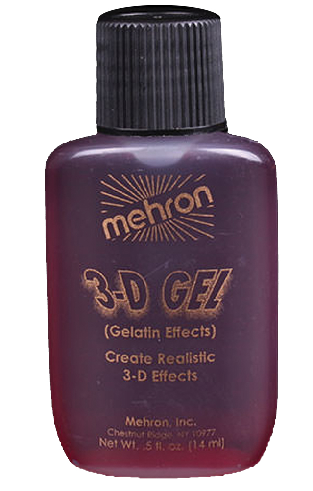 The most ghoulish effects are achieved with 3-d gel. No adhesives needed. Removes from skin and hair with warm water. May be used as a substitute for latex on children. 5oz.