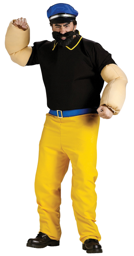 Popeye’s rival for Olive’s affection. Perfect companion to your friend’s Popeye costume! Includes black shirt with muscle arms, yellow pants, blue belt, blue captain’s cap and black beard.