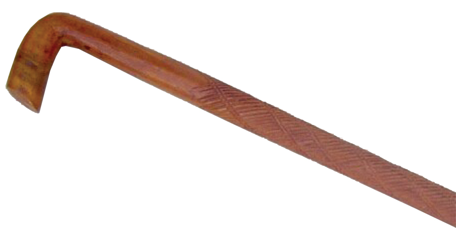 Carved wooden cane with rubber tip. 36 inches long.