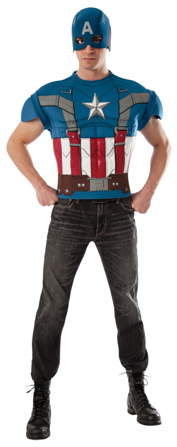 A quick and easy retro Captain America look! Muscle chest costume top comes with matching headpiece. Add your own pants! Standard size fits up to size 44.