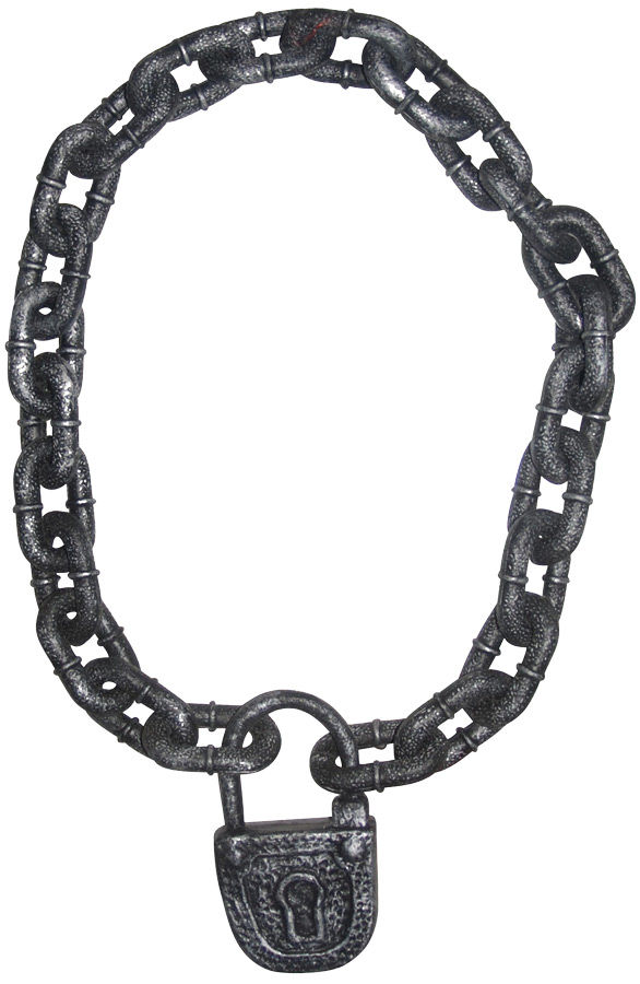 Perfect for a jail scene of for use in a haunted house. Plastic, realistic-looking chain with lock. 37″ x 3″ x 5″.