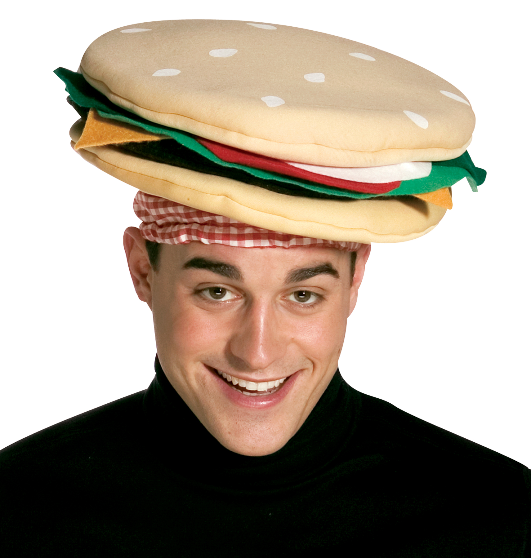 Great creative costume for the cheeseburger lover! Foam-backed cloth soft padded buns have a sesame seed print, fabric layers of fixings, and a soft stuffed burger attached to a checked elasticized cap. Perfect for a couples costume with a cola dress or a French fry costume. Just add your own shirt and pants! One size fits most.