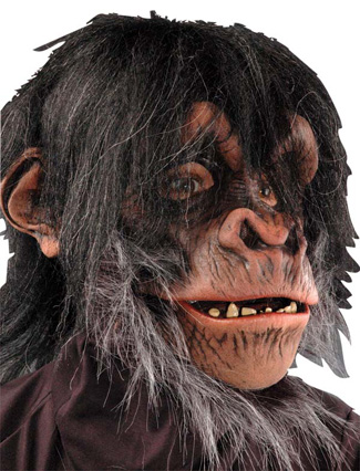 Full over-the-head latex mask with latex front and fur fabric head cover for cool, comfortable fit. Black fur with brown latex face. Matching shirt (1009BSS), gloves (1014BSG), and feet (1005BSF) sold only separately. Handmade mask with special details features moving mouth capability. The chimps mouh move when your mouth moves! Mask openings: eyes, mouth. Has black stretch material so you can wear this mask comfortably! Breathable mesh material in mouth area, so all you see is the chimps mouth not yours! Care instructions: after use brush hair, stuff mask with clean dry newspaper, place in plastic bag and store in a cool dry place.