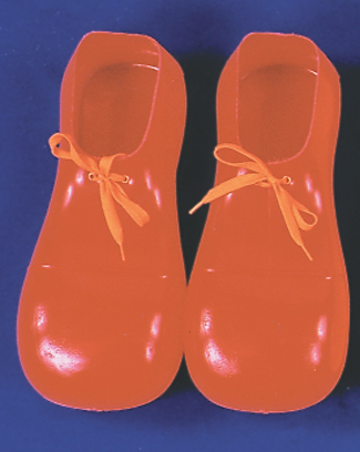 Lightweight but durable plastic clown shoes easily fit right over your own shoes. Shoe laces included. Can be used by a large child or an adult.12 inches long. Red.
