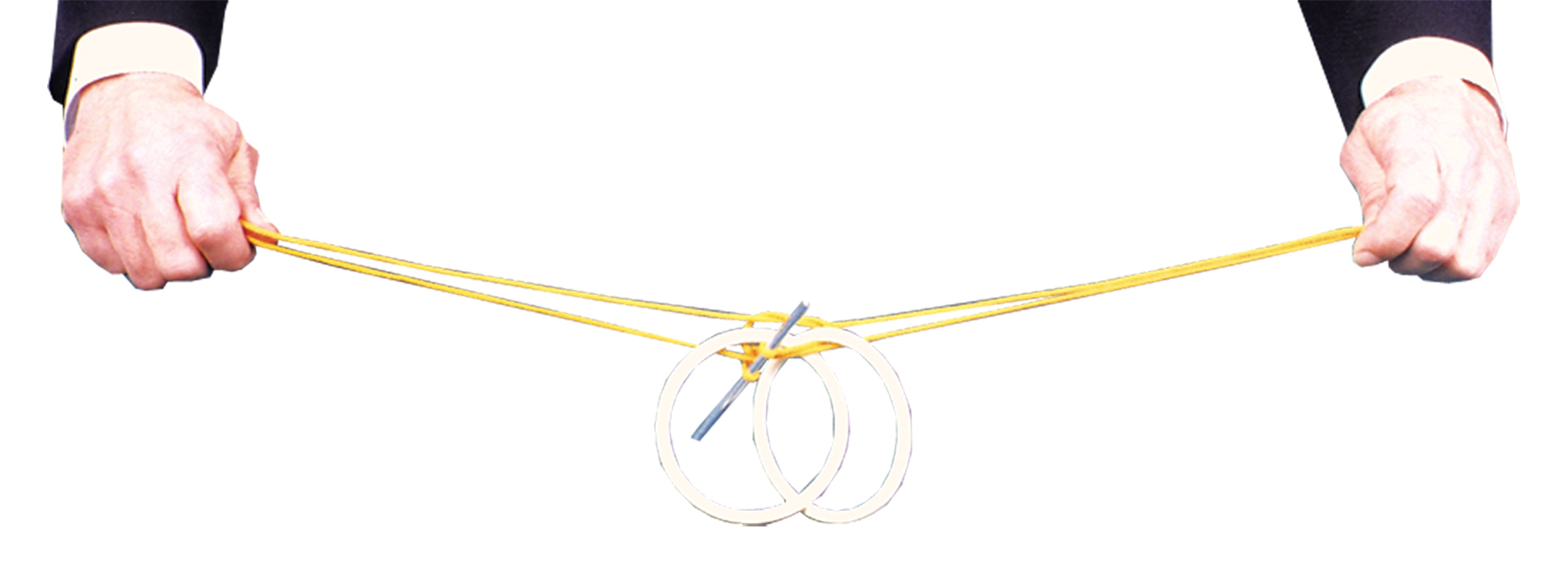 Two solid rings are tied on a rope, and right beofre your eyes they magically fall loose.