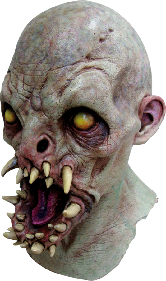 Super detailed, full over the head mask, individually hand painted for the most realistic look possible. Has a mouthful of fangs protruding all around the mouth area.
