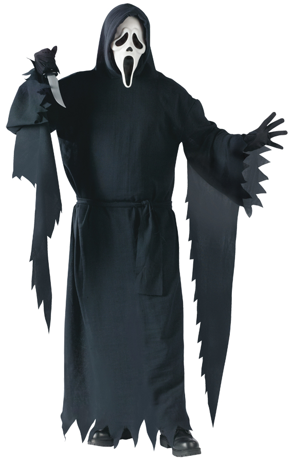 Deluxe hooded robe, mask, belt, and gloves. Knife not included. Try BE60 Bleeding Knife. Adult plus size fits up to 6ft2in, 300lbs.