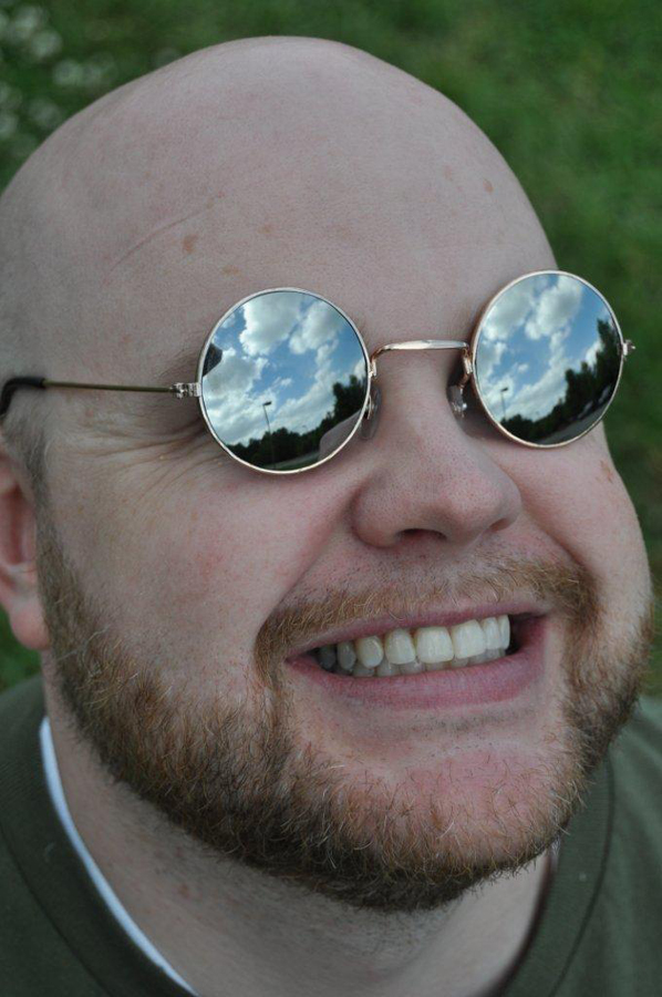Novelty glasses have wire-rimmed round frames with mirror lenses. For ages 12 and up.