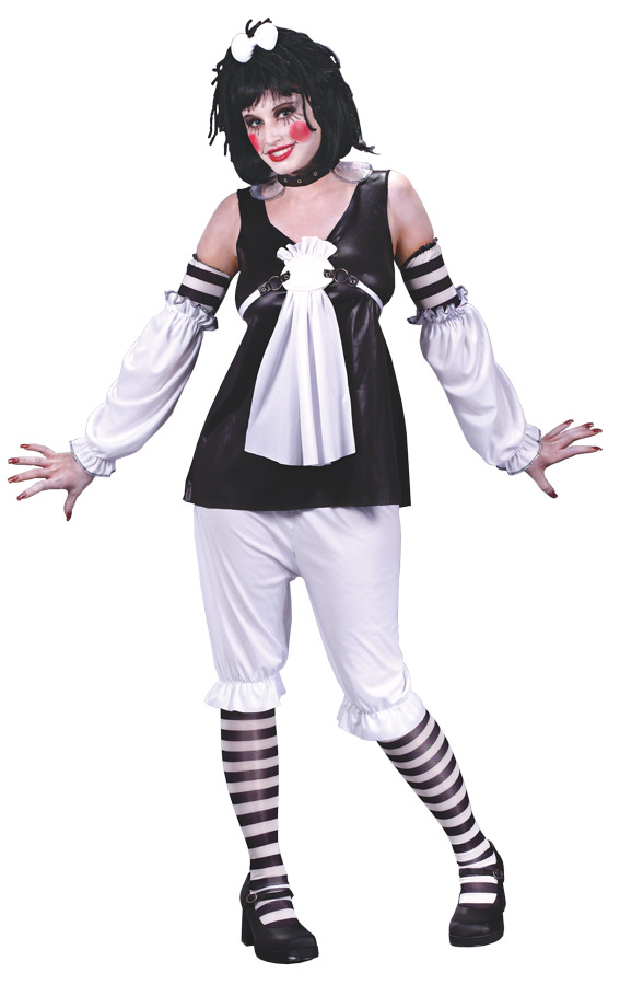 Dress, apron, bloomers, sleeve tops, leggings, headpiece and choker. Medium-Large 8-14. Yarn hair, polyester, nylon.