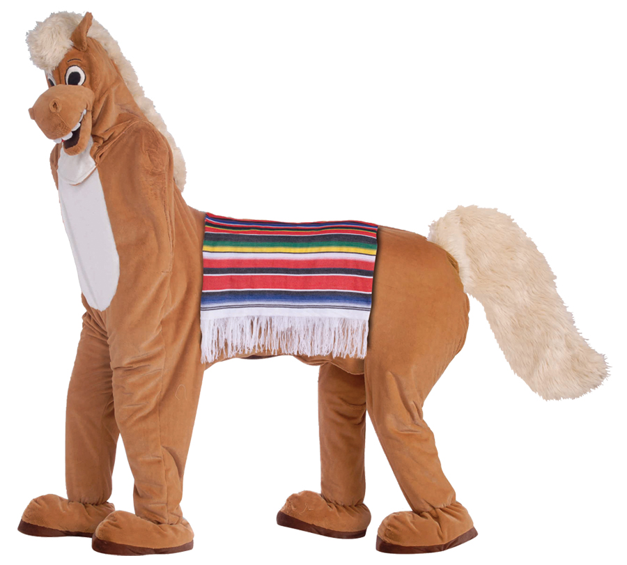 Horse head, horse body front with attached blanket, horse body back, with attached tail. Needs two people. One size fits most.