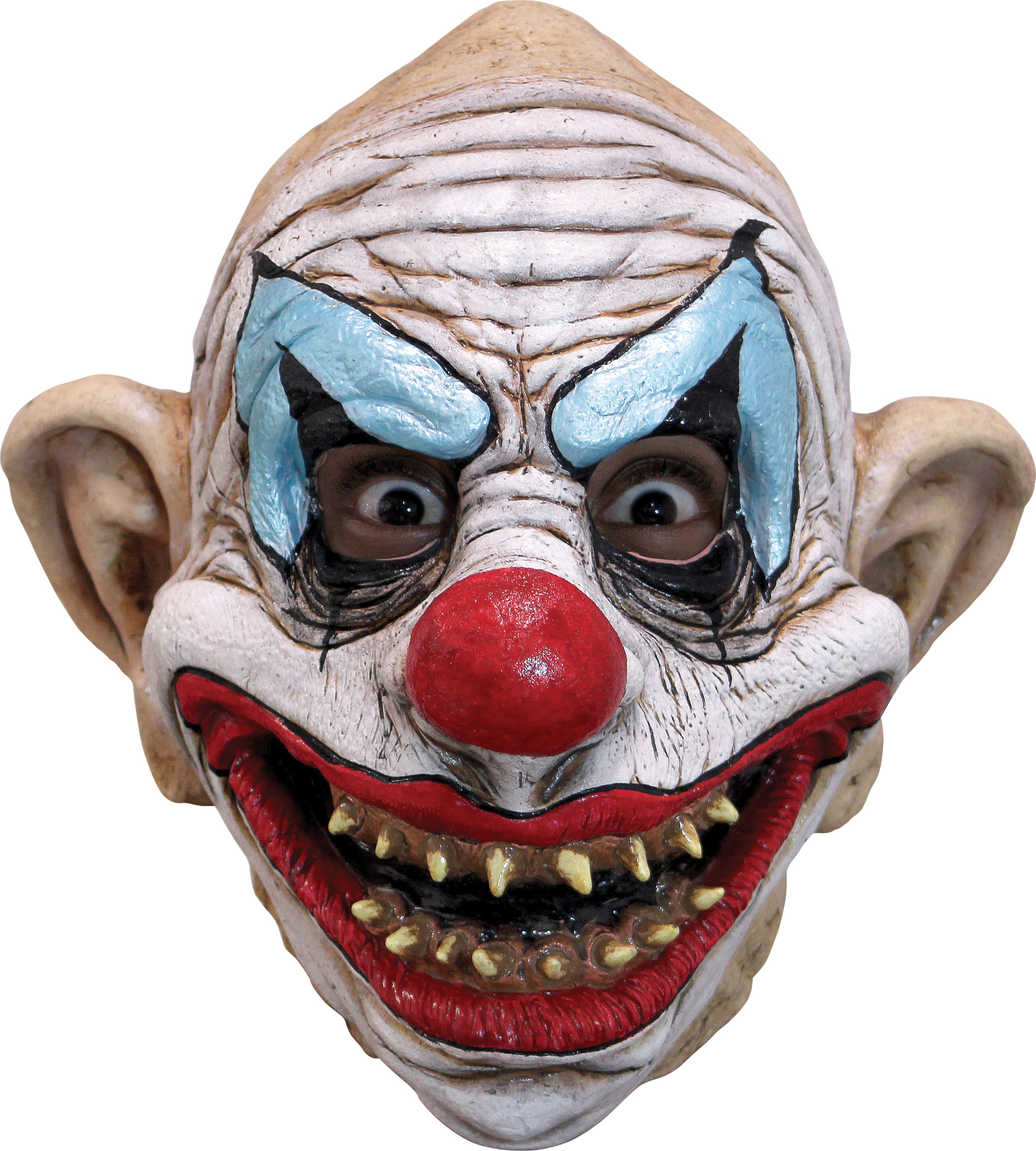 Crafted from high quality latex, this full face mask combines goofy and scary for the perfect clown mask. Kinky the Clown is detailed with a pointy bald head, oversized ears, wrinkled painted face and a large grin with sharp protruding teeth.