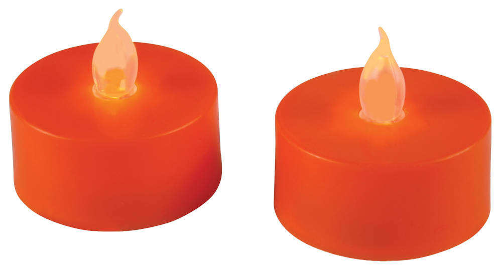 Set of 2 L.E.D. tea lights. Great for use inside pumpkins or other decorations. Safe! No open flame or wires to worry about!