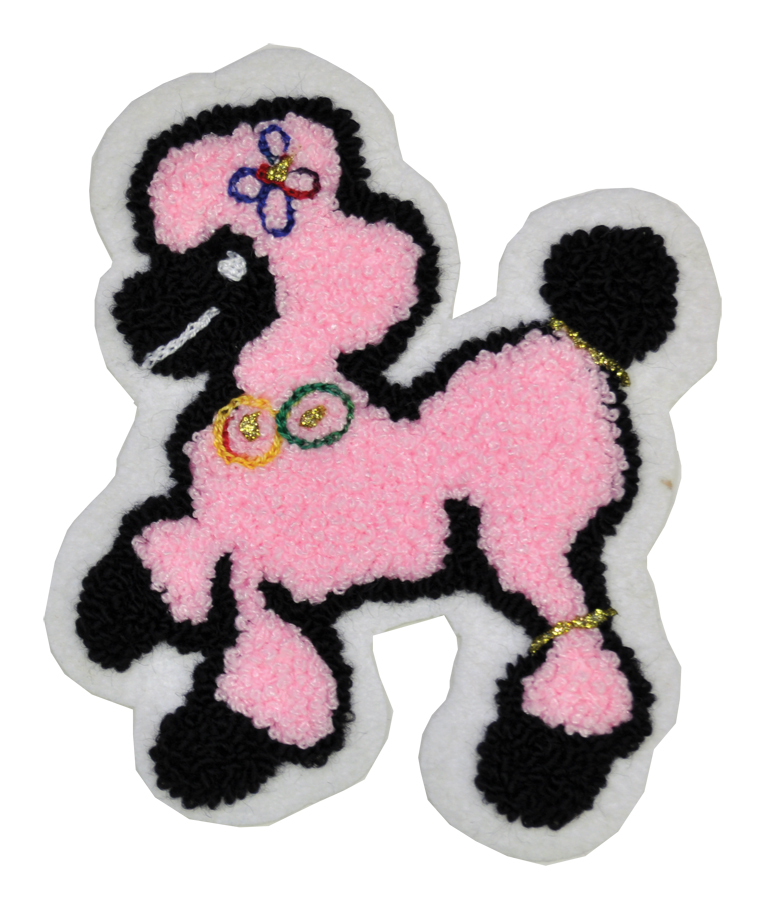 Adorable poodle chenille patches perfect for any 50s poodle skirt. 4 inch tall sew-on patches.