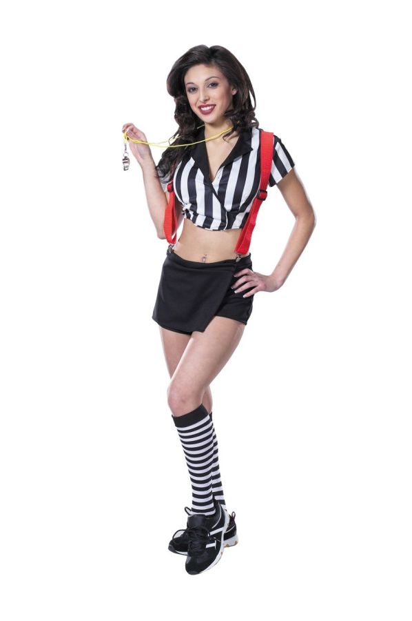 Includes- V-neck midriff top with shorts and suspenders. Sizes 8-10. Polyester.