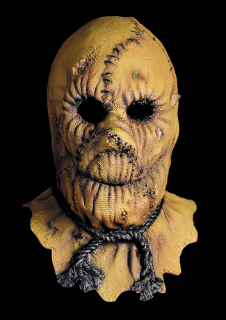 Burlap-look full over-the-head latex mask with molded latex rope around the neck.