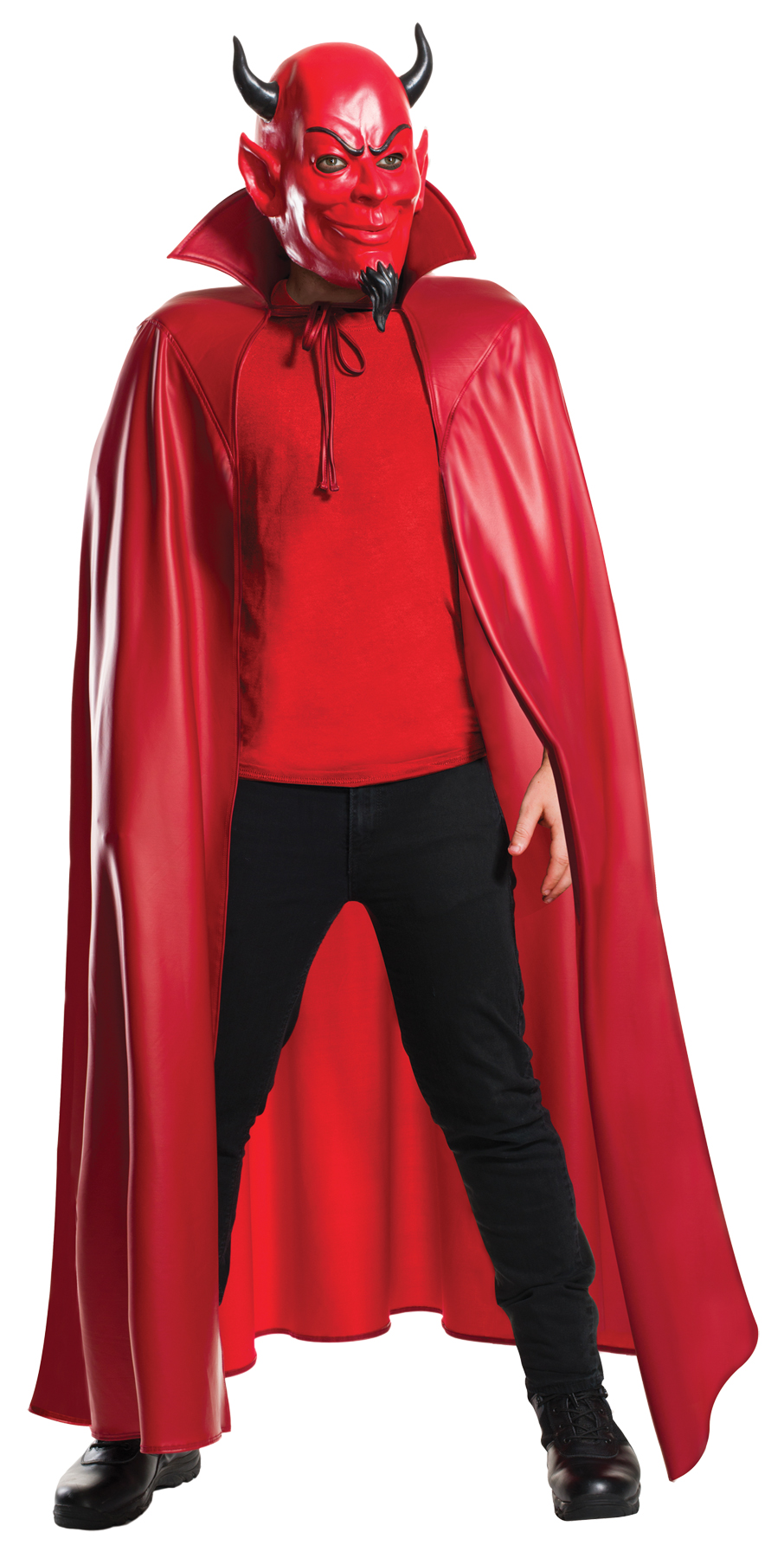 From the new television show called Scream Queens comes this great devil set just like it appears on the show. Red devil latex 3/4 mask and cape with tie and collar. Shirt, pants, shoes not included. One size fits most adults.