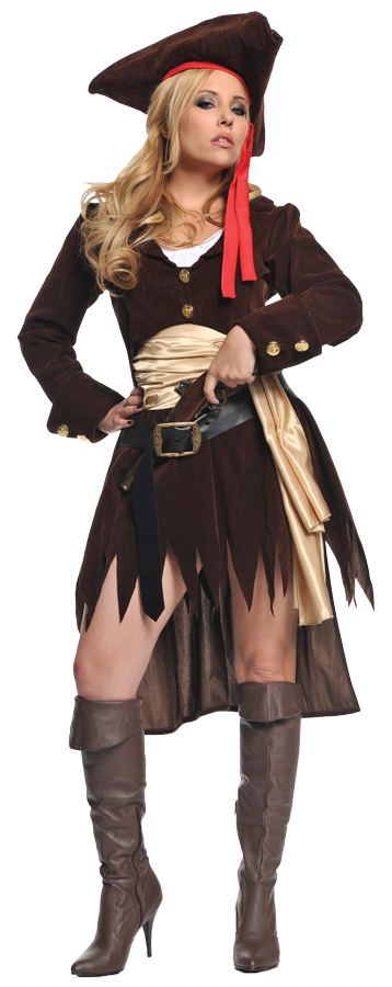 Perfect for anyone wanting to be a sexy pirate! Mini dress with attached jacket, belt and hat. Adult female large fits sizes 12-14.