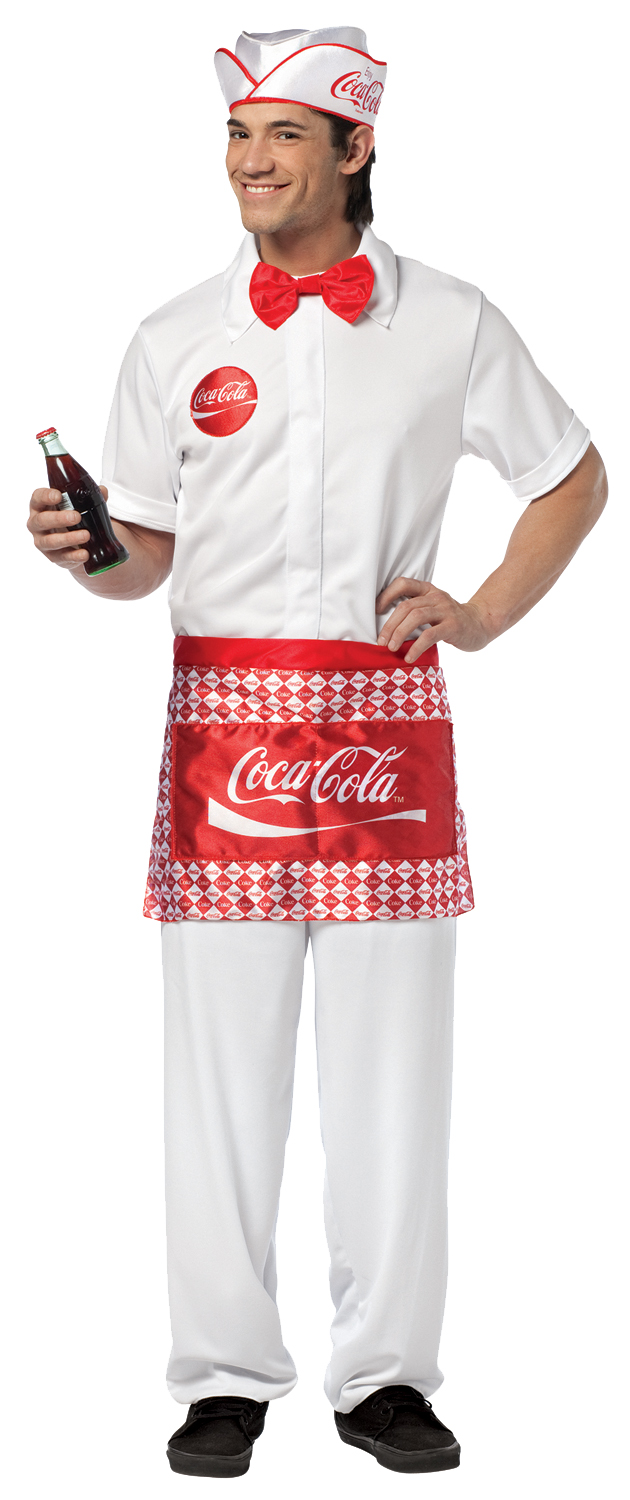 Traditional Coca-Cola Soda Jerk! Hat, shirt with attached bowtie, pants, and apron. Add your own Coca-Cola bottle to finish the look.