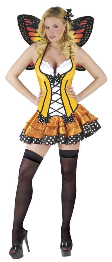 Fitted dress with garters attached and matching wings. Adult size 6-8.