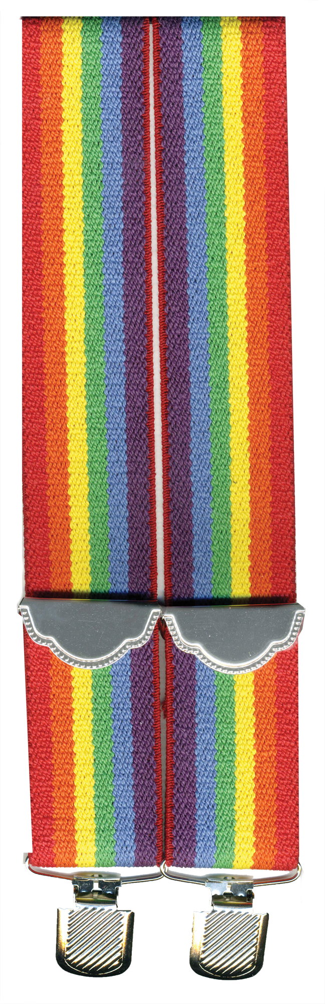 Ever popular multi-colored adjustable suspenders. 1 1/2 inches wide and 39 inches long.