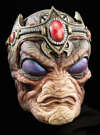 Nothing says commander like this alien inspired mask. Detailed molded and painted mask has eyes, nose, and mouth openings. Comes with care instructions. Not recommended for children under 10 years old. Full Over-the-head Latex Mask. High grade natural latex.