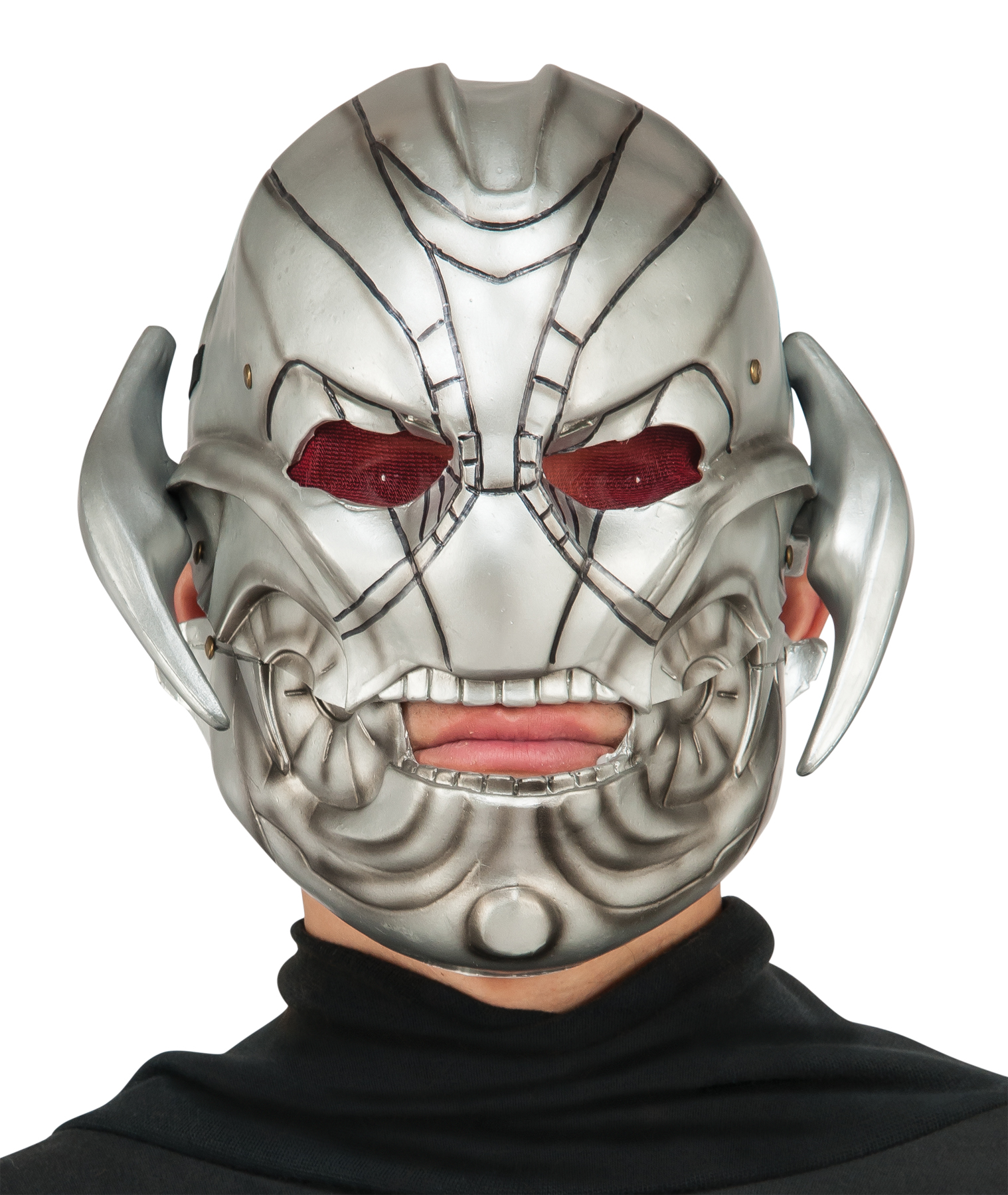 If you want to become the evil villain Ultron from the new blockbuster Marvel movie Avengers – Age of Ultron, this great mask is the perfect place to start. Not only a great sculpt, this latex, full over-the-head mask is legitimately fearsome and has a moveable jaw for a far more realistic appearance! One size fits most.