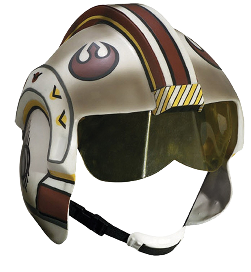 X Wing Helmet Adult Halloween Accessory. With speed and power, take on anything the Empire throws at you, in this X-wing Helmet! Sturdy vinyl helmet with moveable visor, and elastic chin strap. Fits most adults. Good vision and ventilation.